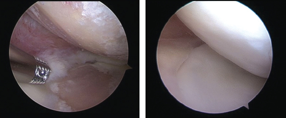 줄기세포를 이용한 연골재생 수술 전(왼쪽)과 후, 연골재생 효과가 나타났다.